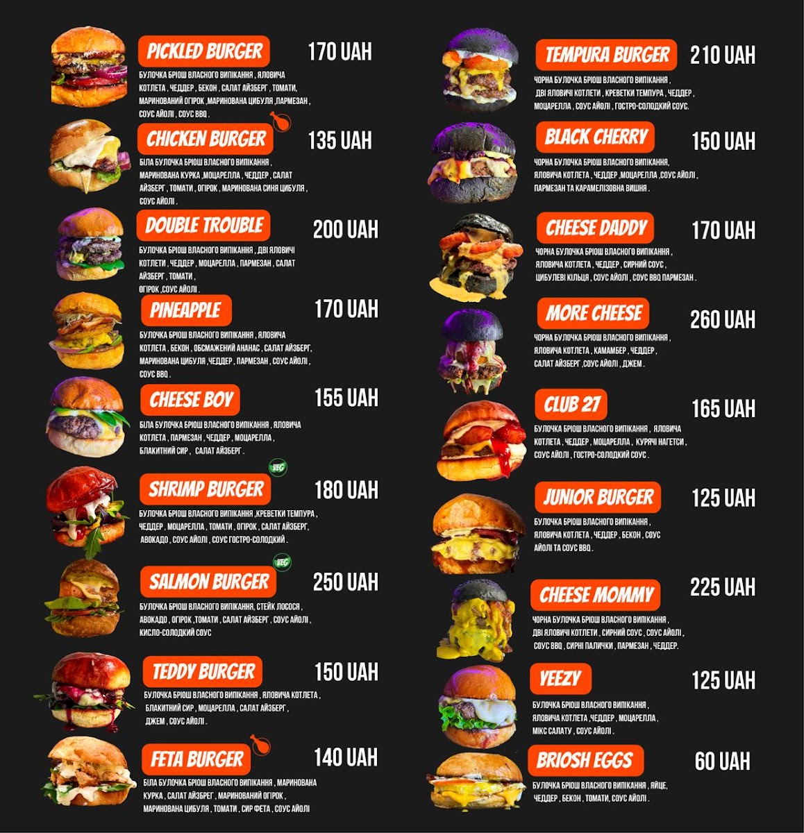 Samoyed burger Menu
